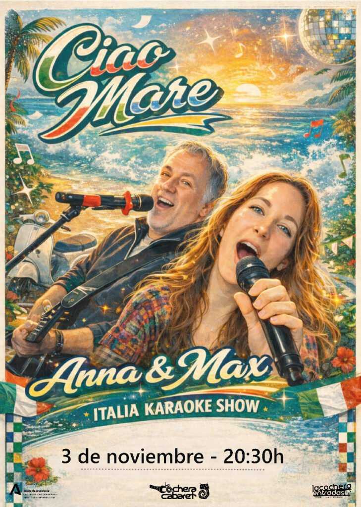 Desde el pop nostálgico de los 70 hasta los ritmos que marcaron una época, «Ciao Mare» es una fiesta total e interactiva donde el verdadero protagonista eres tú. Prepárate para cantar en italiano (¡o en el español de toda la vida!), bailar y vivir una noche de pura felicità.