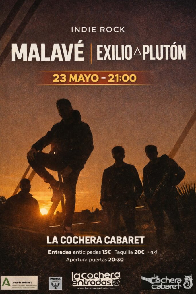 El grupo malagueño MALAVÉ encabezará la noche y les acompañarán compartiendo escenario el grupo granadino EXILIO A PLUTÓN.